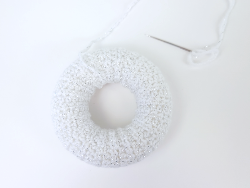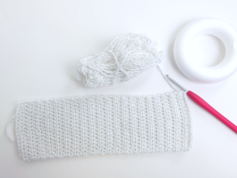 why not 30cm long?" but this is too long and our rectangle will bunch up on the inside and not sit flat. It's better to crochet slightly less to avoid this and to stretch our rectangle over our ring.